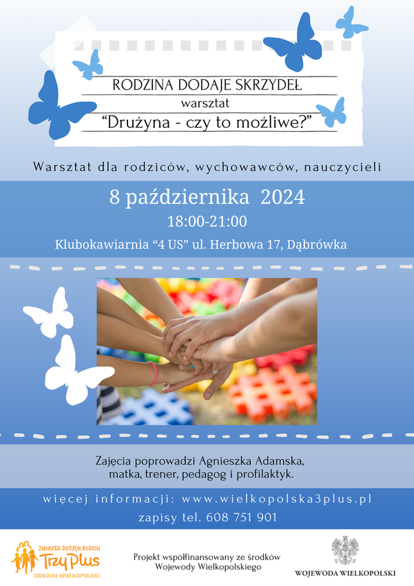 W trakcie warsztatu zapewniona zostanie opieka dla dzieci młodszych. Dla rodzin dodatkową wartością jest rozmowa podczas warsztatów z innymi uczestnikami borykającymi się z takimi samymi problemami, o sposobie ich rozwiązania co pozwala na korzystanie z doświadczeń innych osób. Szczególnie ważne jest to także dla nastolatków.
