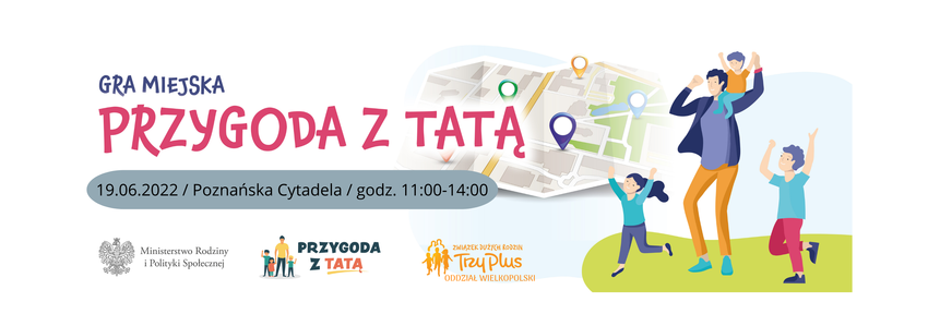 Gra miejska „Przygoda z Tatą” wraz z festynem i koncertem są częścią programu „Ojcostwo – Przygoda życia”. 19 czerwca br. we wszystkich 16 województwach odbędą się wyjątkowe wydarzenia rodzinne promujące pozytywny wizerunku ojca i wzmacnianie więzi rodzinnych w oparciu o szacunek i zaufanie. Ojcostwo to ważny obszar samorealizacji dla mężczyzny, a także ważny element prawidłowego rozwoju i wychowania dziecka na szczęśliwego dorosłego. Organizatorem wydarzania w województwie wielkopolskim jest Oddział Wielkopolski Związku Dużych Rodzin Trzy Plus. Projekt realizowany jest w ramach programu “Ojcostwo – Przygoda życia” finansowany przez Minister Rodziny i Polityki Społecznej. |